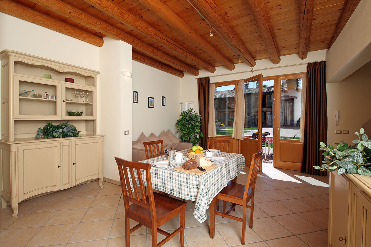 Soggiorno, divano letto doppio, angolo cottura, 1 camera doppia, 1 camera a 2 letti, 1 bagno con doccia e bidet. Al primo o al secondo piano, alcuni mansardati. Senza balcone o terrazza.