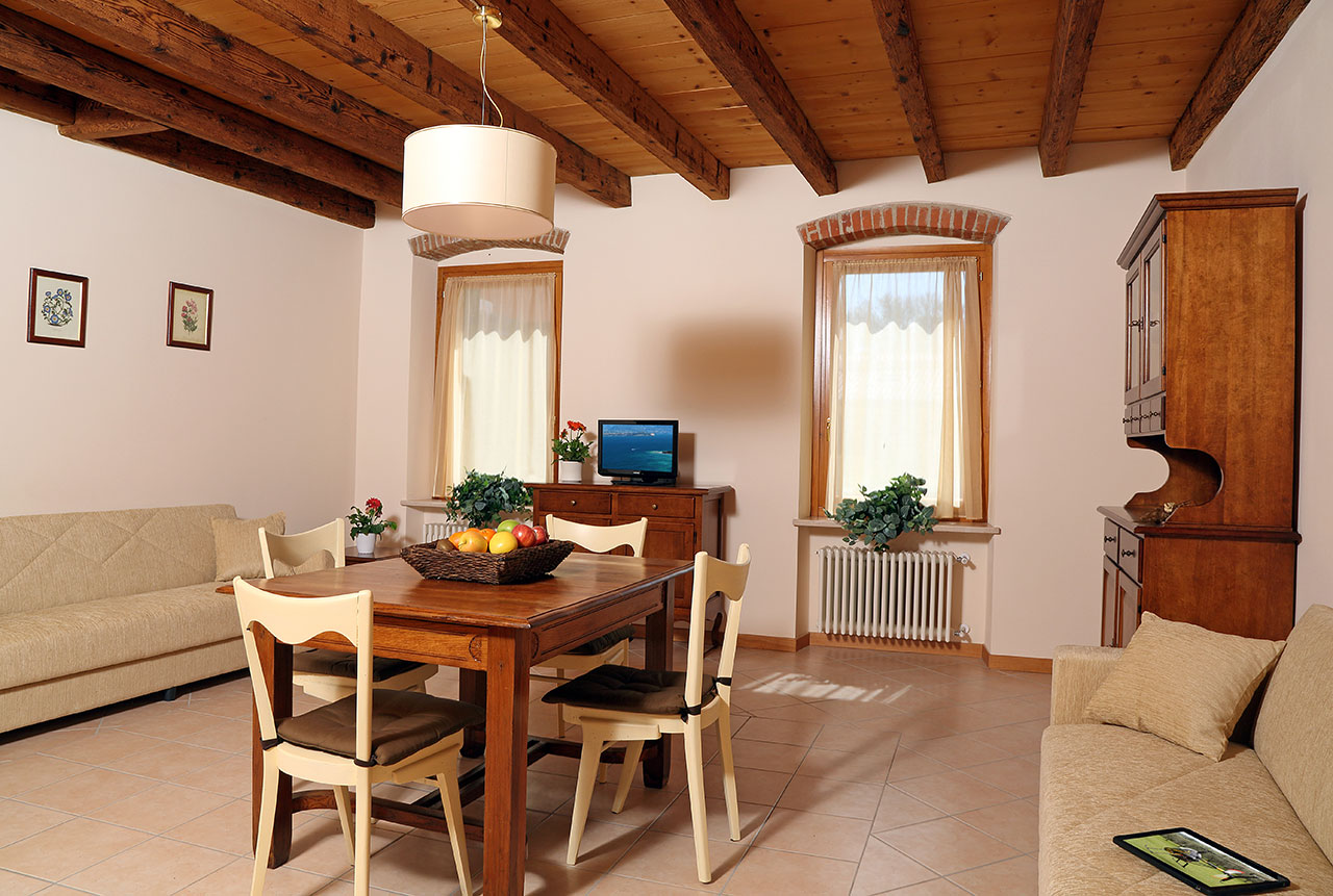 Il Borgo Mondragon offre bilocali e trilocali rifiniti, dotati di ambienti curati e arredati utilizzando un mobilio che si sposa allo stile del complesso con elementi in legno e ferro battuto. In ogni appartamento si trovano aria condizionata e riscaldamento autonomi, TV satellitare, cassaforte, cucina attrezzata con piastre elettriche, lavastoviglie, forno a microonde, macchina per caffè americano e moka.